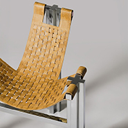 菌糸体レザーを編んだ構造を取り入れたこの三脚アームチェアでは、バイオ素材と手編みの技が融合している。 Photo: Berenice Curt and Caroline Duncan