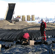 ジオセルとジオテキスタイルを用いた、石油掘削プラットフォームにおける分離と補強